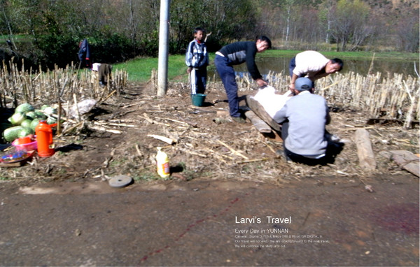 在车上聊了会,了解到黑瘦哥家的这片地租给开客栈的,客栈自建房子+装修。黑瘦哥每年收租几万块钱,等十几年后,客栈就归他所有,挺不错。黑瘦哥的车是新买的,驾照是新考的。