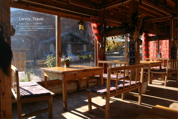 睡醒,下山觅食,瞎转,晚上听歌喝酸奶,继续瞎逛,上山睡觉。就这样在丽江悠哉的住了三天,我们出发去往香格里拉。没有选择包车,而是坐中巴车去,比较安全,也舒服些。