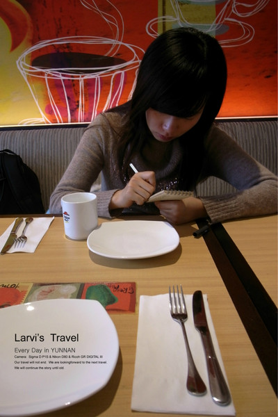 到丽江已经傍晚时分,趁着吃晚饭的空挡,老婆在记账,
