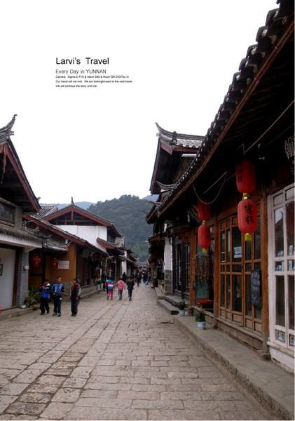从后山可以很快的进入到老城里,一路拉着行李,爬了会山,其实是下山的路,感觉已经有点喘,轻微的高原反应,初到丽江的时候对轻微的高原反应很担心,生怕就走不动了,后来证明是多虑了,适应一下就没事了,之后去了香格里拉更高海拔的蓝月山谷也没啥问题。