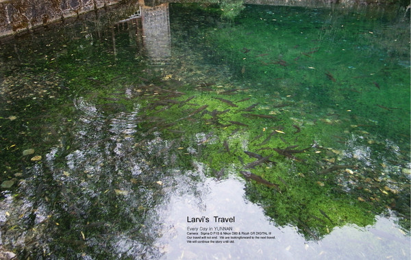 束河古镇的潭水,水中有很多小鱼