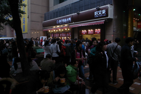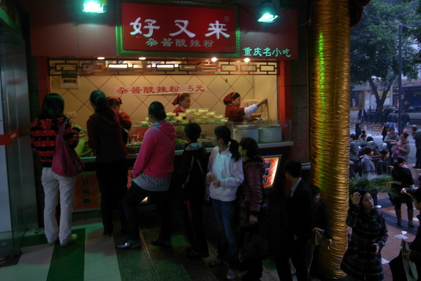 酒店安顿好之后,出门去觅食,去了解放碑美食街,重庆的酸辣粉真的相当好吃,又吃了些卤味,很不错。