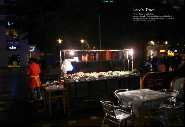 傍晚时分回到闹市解放碑觅食,在市中心吃了顿大餐,然后休息片刻,开始夜宵