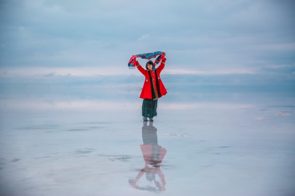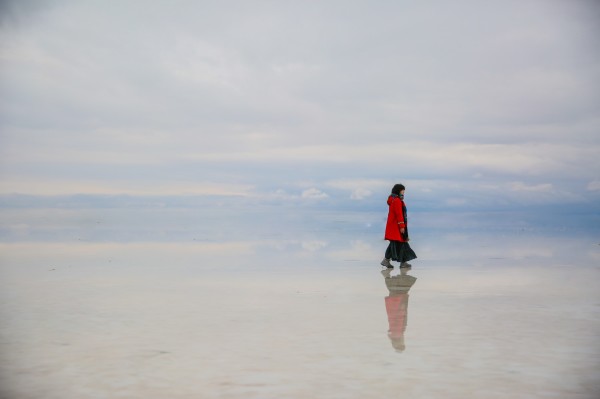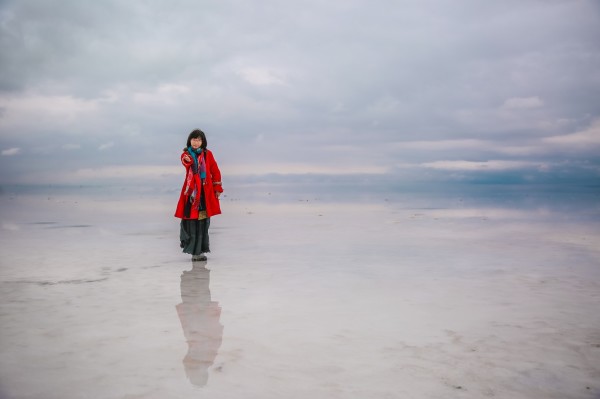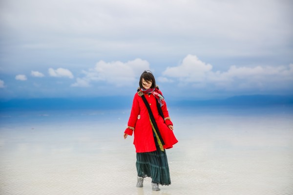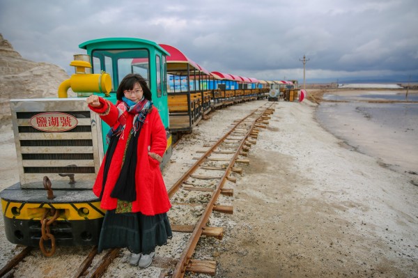 茶卡湖面很浅,想要拍好的照片,就要往深处走走。我们这天的天气过于差了,如果阳光明媚会更好拍。