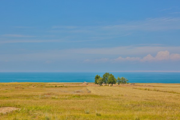 湖面与天空交汇在一起。