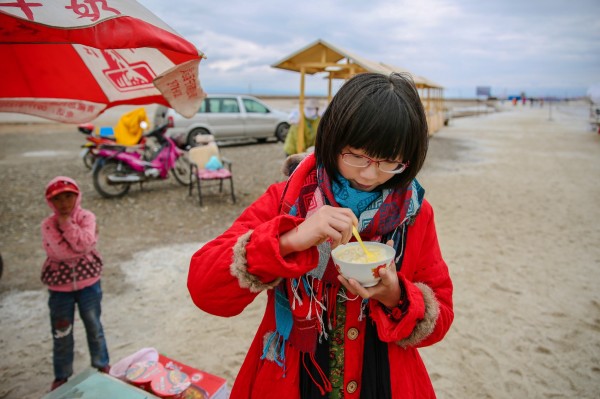 在出盐湖的门口,我们卖了一个牦牛酸奶。10块钱,其实挺好喝的。能喝出是真材实料。