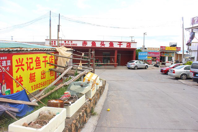 先来张照片预告。 这是去飞沙滩路上的鱼干店门前。