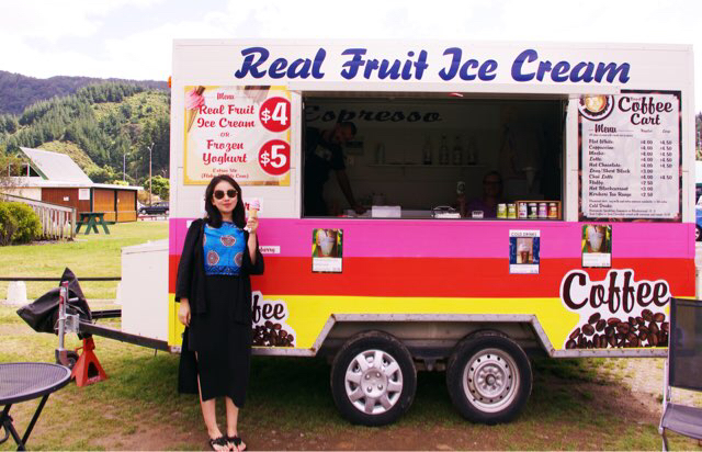 19/2 Wellington-Picton-Kaikoura /107km /3h(ship)+155km /2h 皮克顿游轮的港口遇到有趣的小街道,吃了午饭情不自禁逛起来。因为到处都是奶牛,所以雪糕应该很好吃吧!(神逻辑)事实证明真的是迟到了有生以来的最好吃的冰淇淋。经过皮克顿的朋友去找找,就是港口边的一个小草坪上,一辆冰淇淋车。