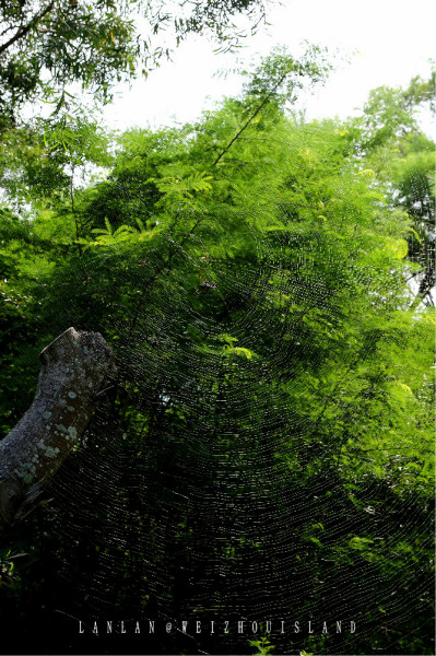 蜘蛛岛绝对可以当成涠洲岛的另外一个名字,路旁都是蜘蛛结的大网,抬头看看天空嘛,还是可以看到头顶的两树之间也结网了,无处不在啊。