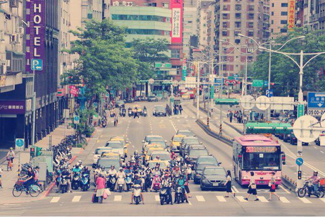 第一天在师大路附近玩,台北的机车跟疯了一样,开的比汽车还快,绿灯一亮呼呼的飞过~