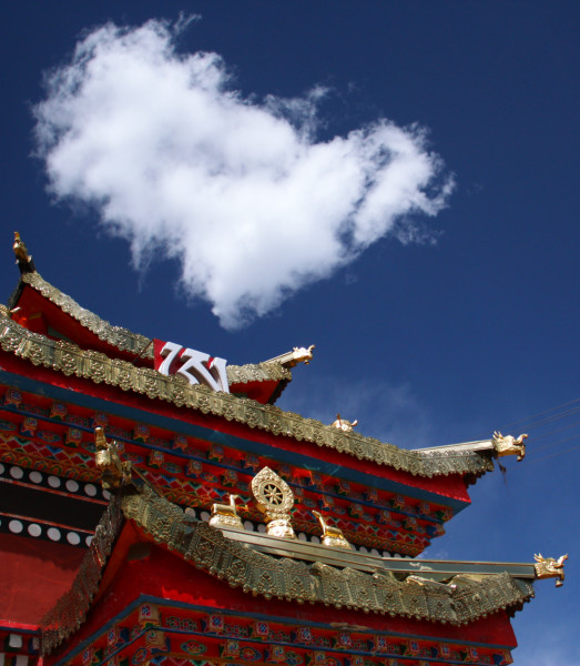 湛蓝的天空,悠闲的云,斑驳的红墙,放肆的花,我醉倒在这高山佛国的阳光下,恍惚听见谁在轻唤,千万不要来色达啊,孽深亦或缘浅,终成一生无尽的挂牵。