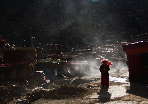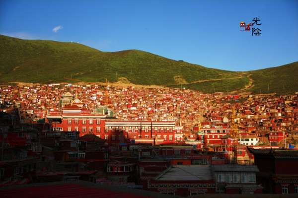 晚上八点,夜色将至。结束十四小时的颠簸,抖落一身的尘土,拼凑起散架的四肢,终于,就要见到色达了。山顶的坛城好似一个大大的音乐盒,晶莹玲珑,悬挂在半空。