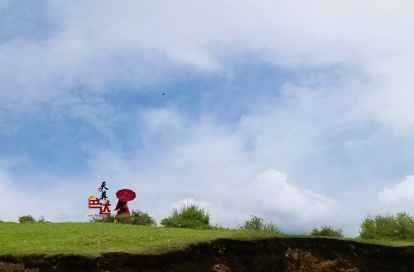 三点钟在下午,暴雨将至前,时阴时晴的天气。半山腰,空心水泥砖堆砌了半壁残墙,一块露出地表的空地,便是简陋的天葬台了。