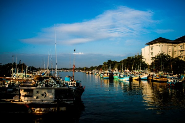 这是在Kothalawala Bridge上拍的,是Negombo Lagoon的入海口处。两岸停满了渔船,人们也开始了忙碌的一天。