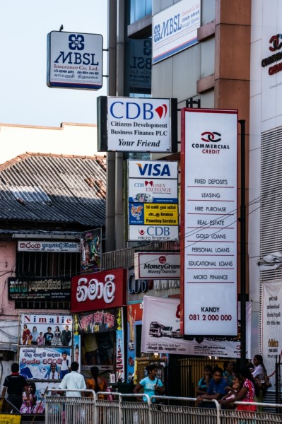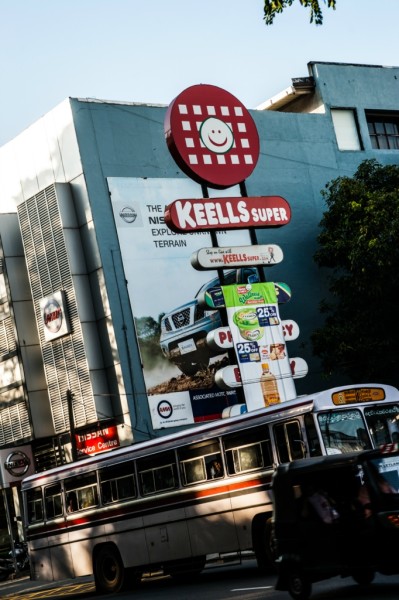 市区里依然随处可见的色彩缤纷的广告牌,相比之下,科伦坡的公交车就淡雅许多了。