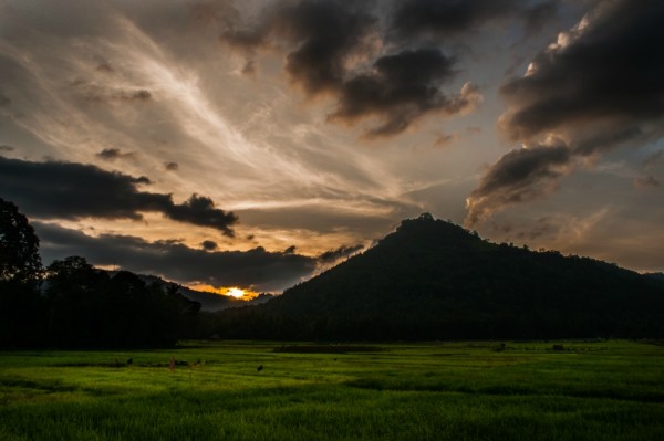 继续在摇摆的马路上驶向康提,途中遇一水果摊,买了水果,吃了金椰子(这里40rs一个),逛了摊主的小农场……最后以一张马路上拍的日落,结束今天的旅程。
