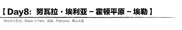 今天的行程安排也是十分充实,先到霍顿平原徒步,据说大概需时4个小时左右。然后回程时在Pattipola搭乘高山火车,途经秀丽的茶园风光,最后抵达埃勒(Ella)。