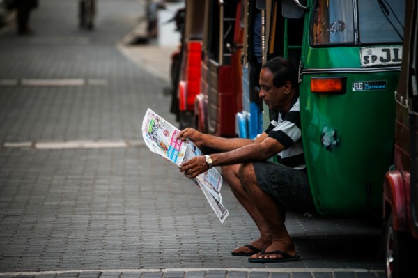TukTuk车司机闲暇之余,也会看看报纸,跟当地人聊聊天。