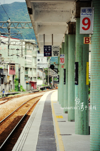 回到瑞芳火车站等车,月台的廊柱是奶绿色的,加上错落的房屋和电线,有一股怀旧的味道。