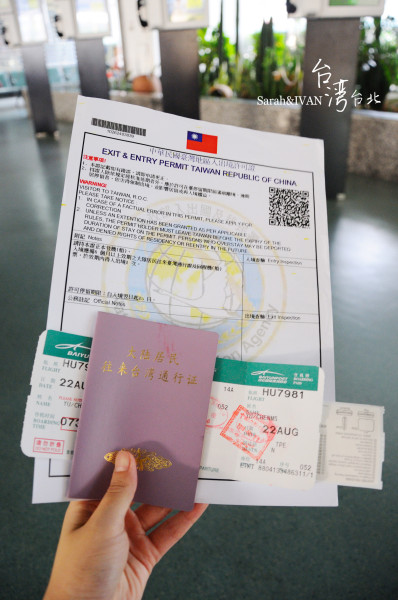 候机中,台湾通行证就是这个紫色的小本本,入台证就是后面那张纸。