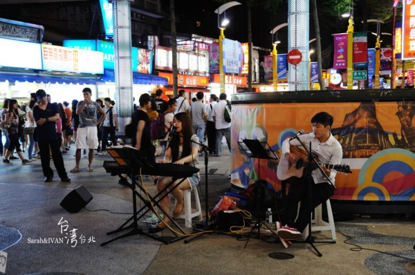 听朋友说西门町的街头艺人都是要有执照才能上岗的,所以水平不是一般的哦。这个妹子唱着周杰伦的歌,声音很好听。