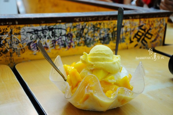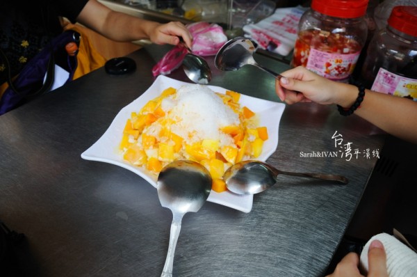 也在路边随便找了一家吃甜品,芒果刨冰, 照片上看起来不是很大份,但实际量很多,四个人才吃得完。