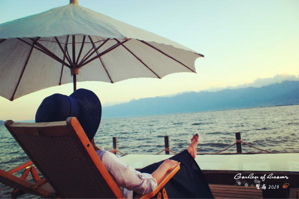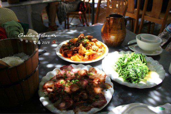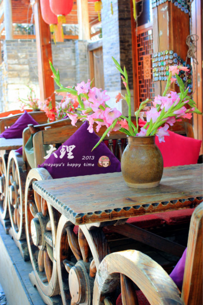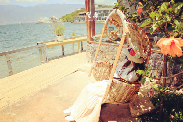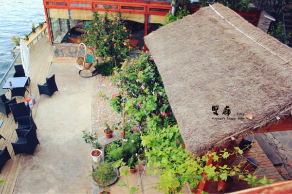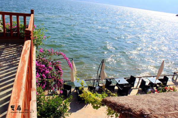 在房间休息了会,出来溜达、觅食啦,这就是海地生活的露台啦,每个来到双廊的人都到这照相,要不然就好像没来过双廊一样。