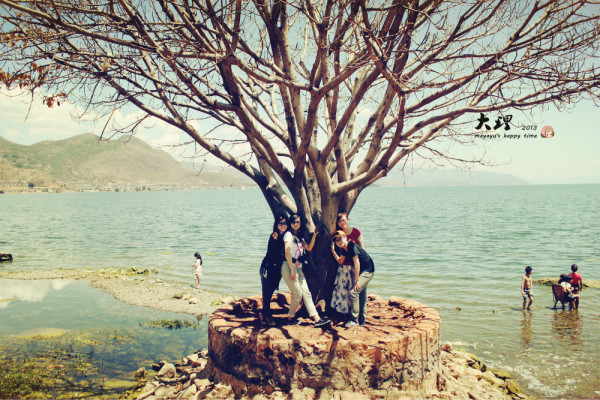 到了一个视角很好的、能看到洱海的地方,司机给我们停车照相,初见洱海有些小兴奋哦,但实在是太晒了,不是热,是晒!