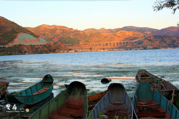云南黑天特别晚,一般都8点多才黑天,此时天有些要黑了,起风了,波涛汹涌的,好像坐在船上的感觉,还有些恐怖呢。
