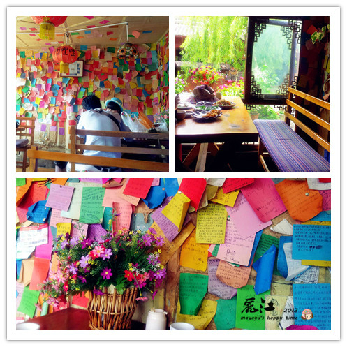 墙上贴满了驴友的留言,看看陌生人的心愿、祝福也很有意思嘛。
