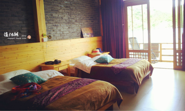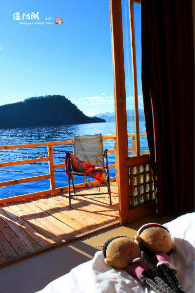 我们的房间,里格半岛上的彼岸客栈,这是一楼的‘夏房’380元/晚,真正的临湖,房间的大露台是伸到水里建的。