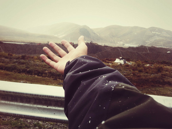 在塔公附近出完饭之后,准备向折多山出发的时候天空开始下雪。