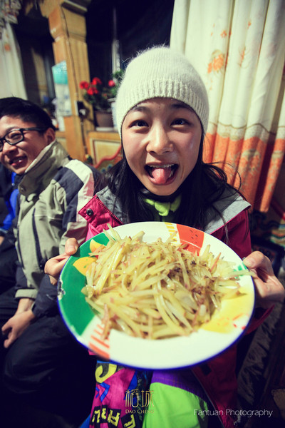 纽约过来的白洁,她说早知道有人拍照我就化妆戴隐形了。她来的时候相机也没带,还穿的单衣单鞋,在我这种好心人的带领下总算帮他搞定一双适合高原的登山鞋,然后把我仅有的Superdry冲锋衣给了她,这样应付多变的高原应该是没啥问题了。白洁邀请我以后去纽约估计我是没戏,我只有等我的侄儿在美国定居了才有机会,估计十年以后吧哈哈,不过等你回国了可以请我吃饭。