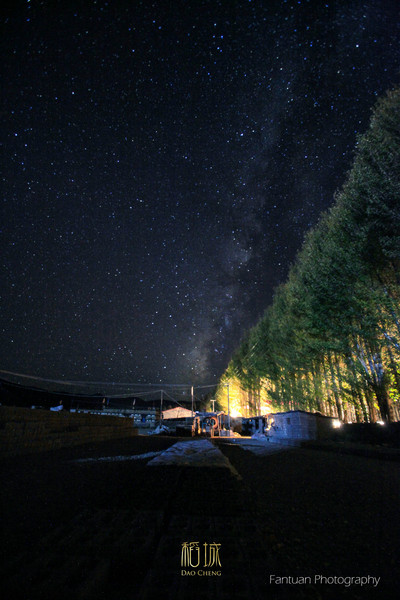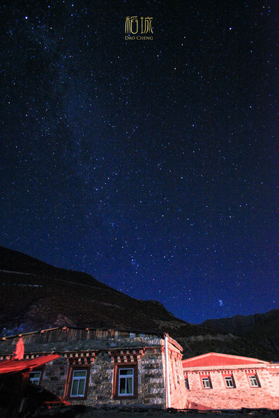 晚上回来头发烫,手脚冰凉估计是下午吹风了。没有感冒药了,老王买了一点红景天我们一人分了点泡水喝。脸发烫依然没缓解,吃完从稻城买的自加热米饭后,毅然决定上楼顶拍雪山星空。找出所有能穿的衣服带和带上上手套。一个人爬上屋顶,顶着凛冽的寒风拍了将近一个小时。中途有一对重庆过来的夫妻也爬上来,我教他们如何用单反拍星空,后来因为有点小感冒实在忍不住找别人开口借了6粒白加黑。实在感谢他们如果没有那几粒白加黑估计第二天爬牛奶海估计就没戏了。