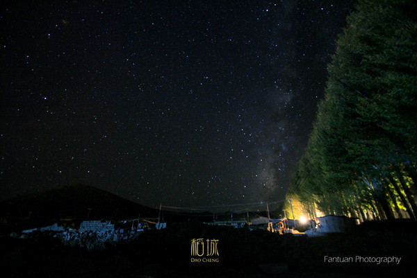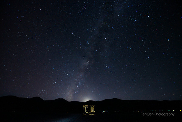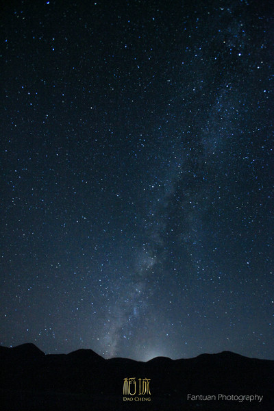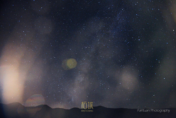 色拉有一片空旷地,漆黑无比正适合拍摄星空,当晚月亮高照我们背对着月亮拍着,却忘记了后面有一轮美丽的圆月。当我们兴奋的转过身才发现身后的美景,于是赶紧调整脚架,但是月亮以极快的速度落下去,终于抓拍到一点点月光,所有人为之叹息。