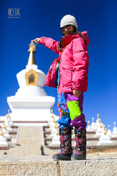 原计划是今天应该去亚丁,同路的很多朋友都走了,空旷的院子就我们四个人,真的是超级无聊,以至于我都忘记上午的时间是怎么打发的。吃完午饭,老汤跟老王都说想睡觉,我跟莉莉完全无睡意。然后我俩一致决定去白塔看看,白塔离三哥家不算近不行的话估计要20分钟左右。在高原我们也不敢走太快,走在大街上我对莉莉咱们租车吧,这样步行太累了。租车一般都是15-20可以讲价的,压身份证就好了。