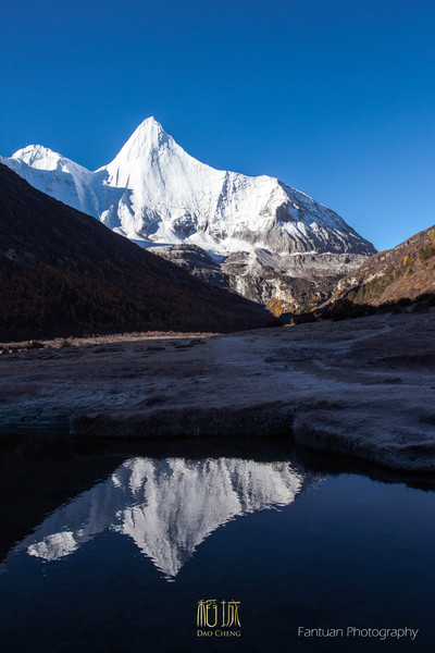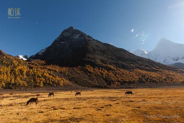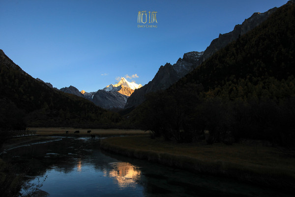 清晨的洛绒牛场,冻手冻耳的。地霜到处是,一片寒冷气息。央迈勇真的就像冰淇淋,很想上去添一口,早知道我就应该来个借位拍摄了。