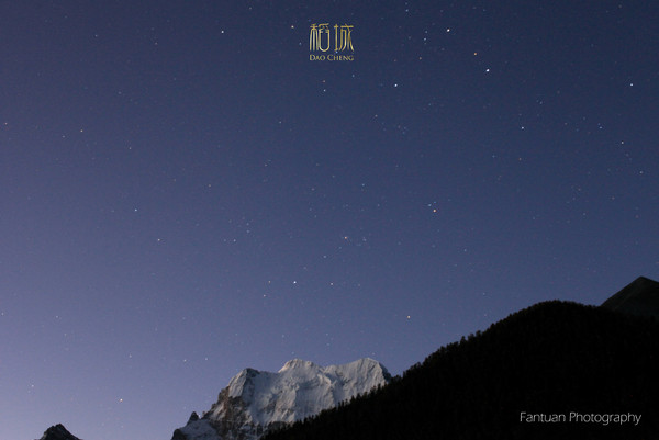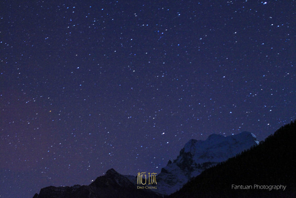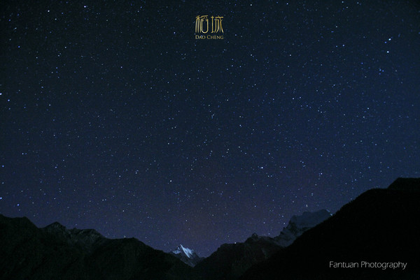 早上起床后,看见对面还是繁星点点,果断拿起相机爆了一张。清晨夏诺多吉这边大多数处于明暗交界,阳光从山的一头射进来,显得整个山体积感超强。