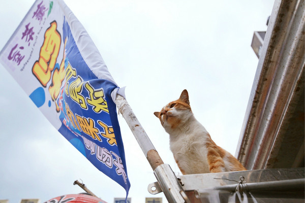 在下一班火车到来的一小时内,匆忙吃了些小吃,逛了明信片店,爬上山拍了猫,遇见一个来自京都的在猫村已经拍摄一年半的拥有数台莱卡机的摄影大师蜀黍,欣赏了他展示的照片并且一顿攀谈合影,最后踩着点狂奔下山冲进火车。