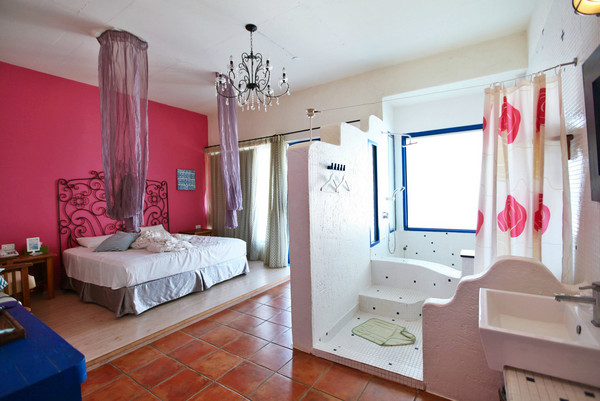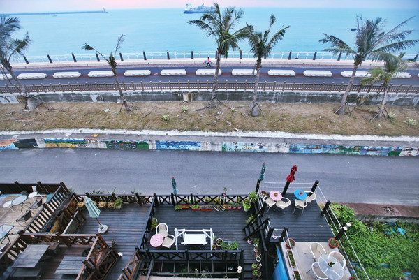 花莲海滨街上全都是各种民宿,蚂蜂窝上比较出名的海传也在那里。海洋恋人就在海传的旁边一点,是一个艺术家阿姨开的,但基本不在店里,只能看到各种她作的画被摆放着。民宿走的是类似国内知名的娜雅类风格,但是从大厅到房间全都布置地极为精致漂亮(绝非只有涂料墙和一张看似华丽的床,住过的都懂得= =)。后门有小花园,可以直接走到沿海的自行车道;顶楼有露台,景观非常好。