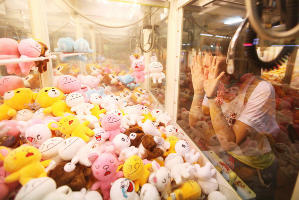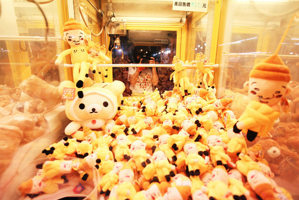 夜市除了美食当然还有小游戏,夹娃娃机拍出来好有偶像剧赶脚的啦