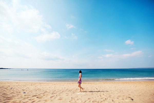 清早的阴天下的海水呈现出特别清凉的薄荷绿色,这就是最大的礼物了。