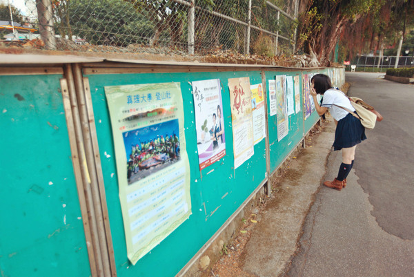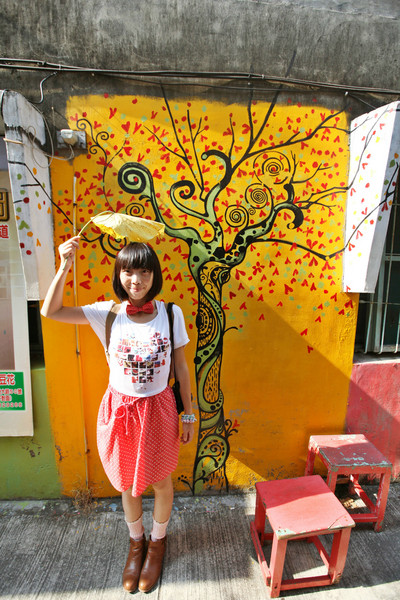兜了个大概出学校,心血来潮想去台中据说比较文艺的几条路去看看。在校门口等公车的时候一直犹豫不决,看看车看看车牌确不准该上哪辆,就在此时,一个大约是东海大学学生的姑娘看出了我们窘境,主动上前来询问我们去哪里,并且特别热情地告诉我们乘哪辆车,这让我分外东海大学有徒增了好几份好感。