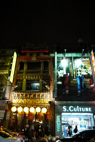 西门町的街道上,时装店和天后宫相邻而居相安无事