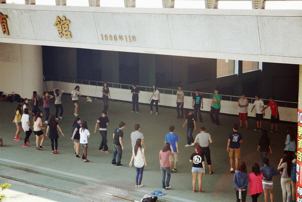 出淡江中学走两步就来到了真理大学,一进大学就听到欢快的音乐声,寻声而去,原来又是社团活动。听着音乐忍不住也舞动起来,如果青春可以重来,一定要来台湾的中学和大学参加各种社团才圆满!!