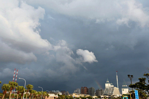 压顶的乌云从远方飘过来,一时间形成东边太阳西边乌云的特殊景象。