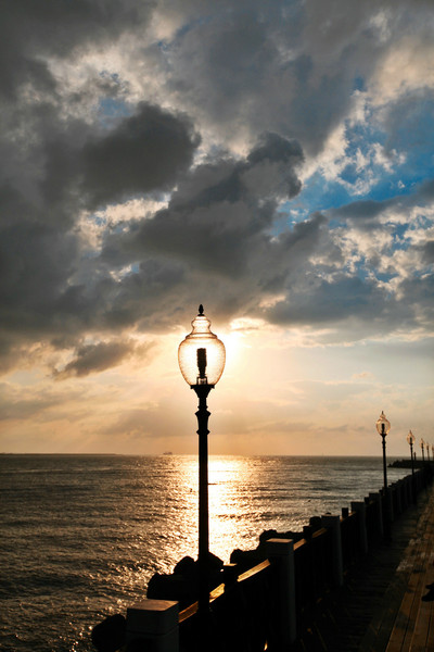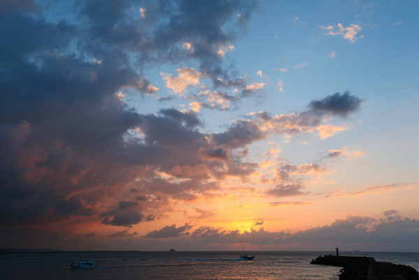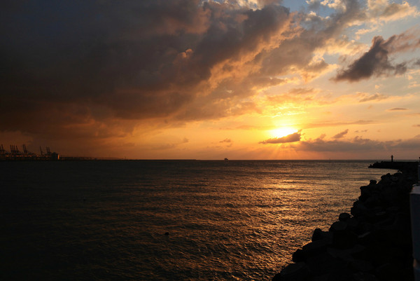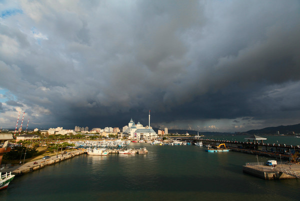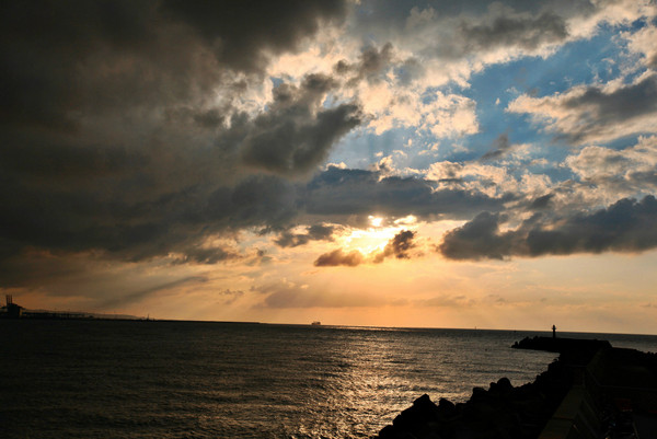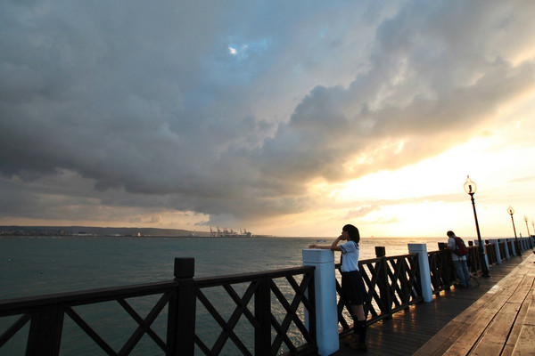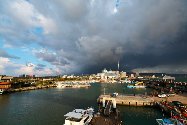 夕阳的昏黄光芒照在港口,背后则是黑压压的云层,好像末日奇观。