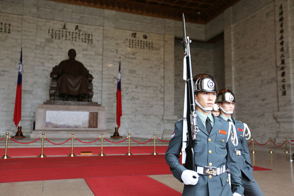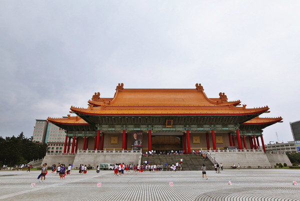 地铁转往中正纪念堂。自由广场上恰逢学生们正在排练双十国庆日的节目。