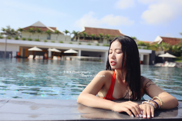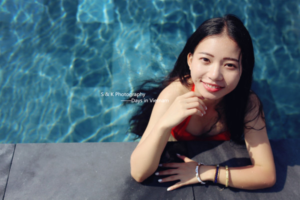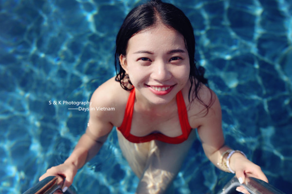 其实还没开始拍,脸就已经红扑扑的晒伤了,没下水前Ken就说了皮肤红了的事,但下泳池以后,由于Ken先生专注专业的摄影态度,也就没提这事儿了。