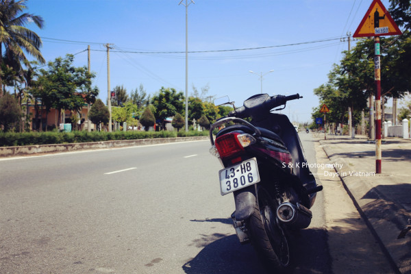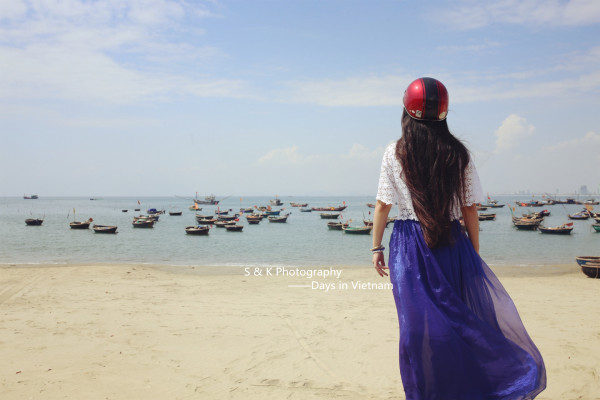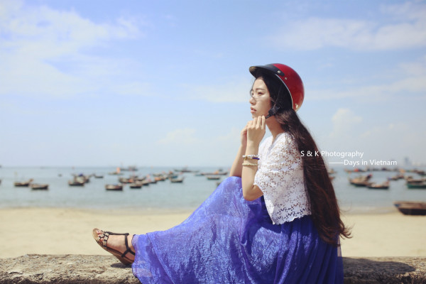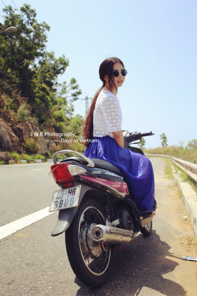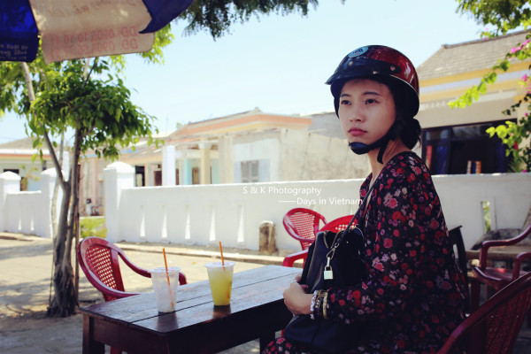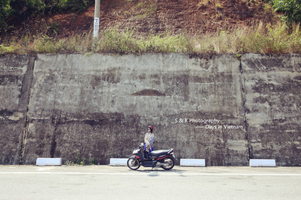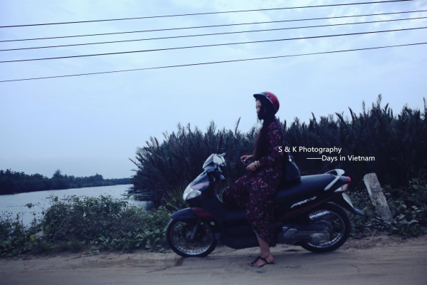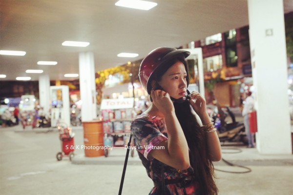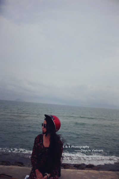 到达岘港的第一天,为了能够好好旅行和游玩Ken示意租摩托是最好的选择。但是我一脸的不高兴,一是没骑过二是害怕不安全,皱着眉嘟着嘴半天不说话,Ken那头忙着跟租摩托的大叔吃力的交涉去到加油站加完油转向我,拿着安全帽认真的帮我带上扣好,就一同探路去了。老实说我喜欢每一次Ken给我戴上安全帽的样子,像照顾孩子般,又好像我没有手或者是个什么都不懂的傻瓜似的。上图是第一次戴上安全帽之后,一脸不愿意Ken抓拍的。